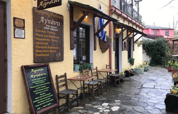 Με το βλέμμα στην πλατεία, την εκκλησία, το μεγάλο πλατάνι και τη βρύση, που για ένα αιώνα τώρα δροσίζει ντόπιους και περαστικούς, στέκει η ταβέρνα Αγνάντι στην Τσαγκαράδα εδώ και 10 χρόνια.